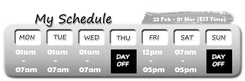 Dirty Talk, Flashing, Fetichismo de Pies, Azotes, Estriptis, Flexionar, Cock Rating, Baile Erótico, Dedos, Humillación, Masturbación, A Cuatro, Bomba para pene, Eyaculación, Paja, Show con Aceite, Orgasmo, SPH (humillación de pene pequeño), Dildo o Vibrador